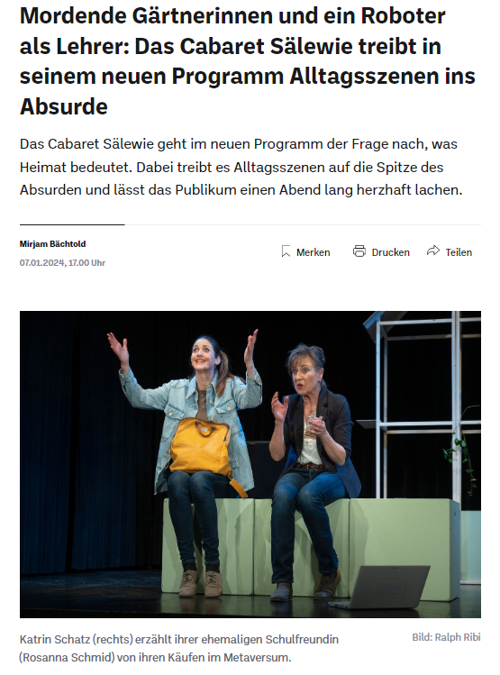 Nach einer kurzen Pause ist das Cabaret Sälewie wieder auf der Bühne anzutreffen. Im Februar 2020 sind wir zu Gast in der Stuhlfabrik Herisau: