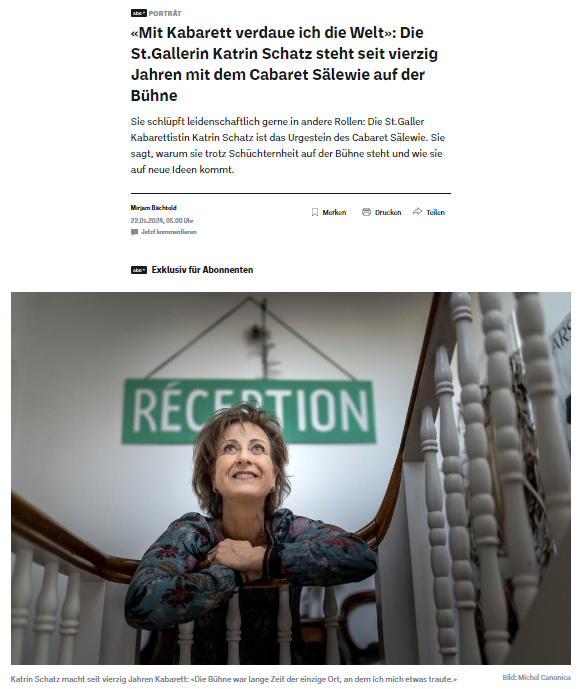Vier Jahrzehnte wirkt Katrin Schatz schon im Cabaret Sälewie. Unsere Jubiläums-CD präsentiert eine ausgewählte Sammlung mit unvergesslichen Liedern aus ihrer Feder, interpretiert vom aktuellen Cabaret Sälewie-Team.