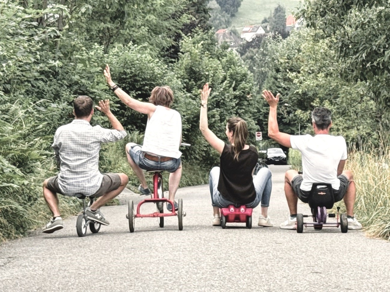 Es fahren mit: Rosanna Schmid, Katrin Schatz, Thomas Frischknecht, Thomas Keller
