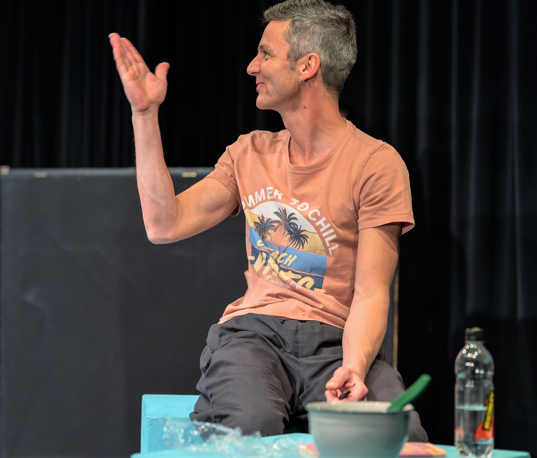 Nach 22 Vorstellungen, 18 in der Kellerbühne und vier in der Stuhlfabrik, fällt der Vorhang für das aktuelle Programm. Das Publikum applaudiert noch im Saal, während sich das Ensemble im Hintergrund in den Armen liegt. "Freude, Erleichterung, Müdigkeit, Dankbarkeit, Wehmut, Hoffnung,..." die Emotionen sind nicht zu verbergen.